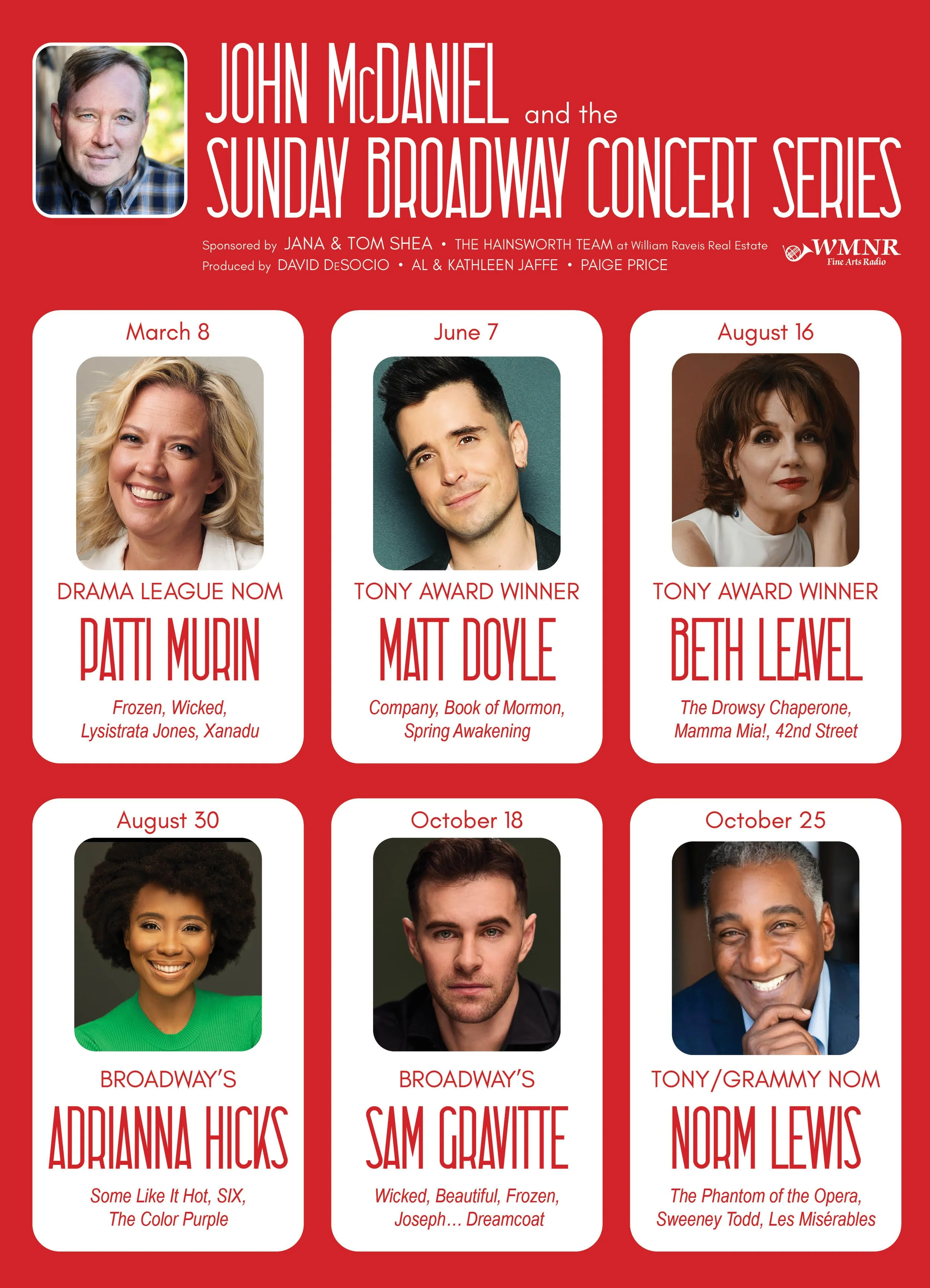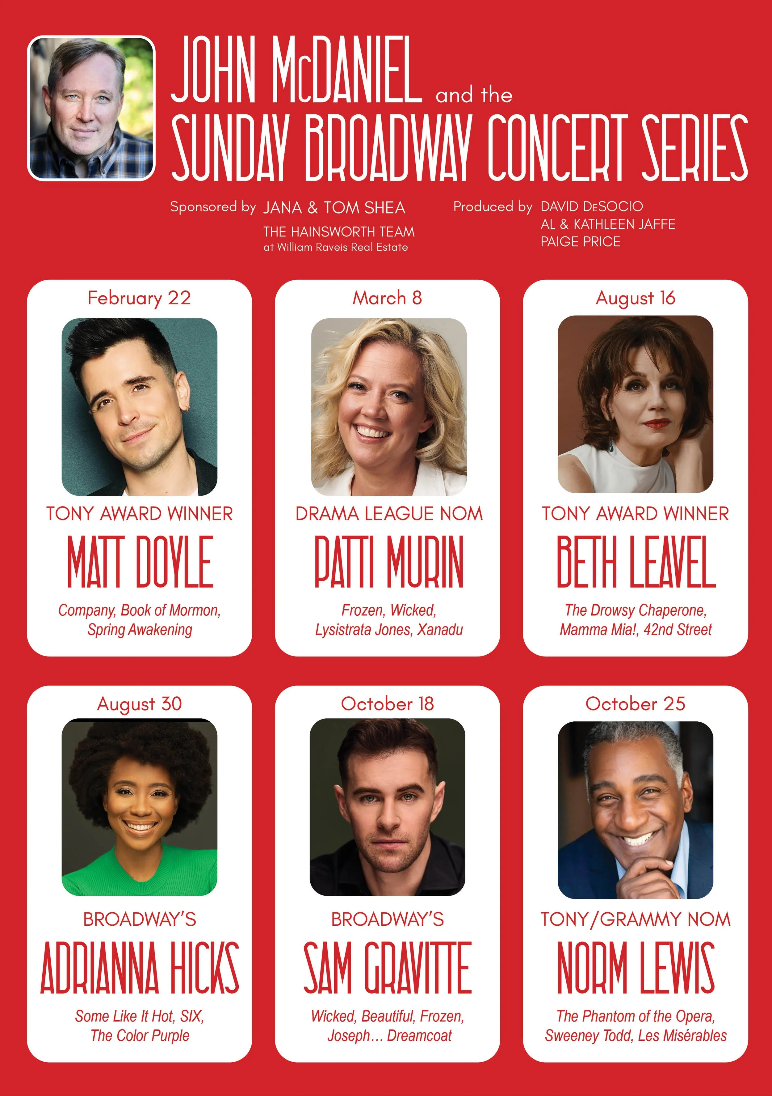 Broadway comes to Branford in this intimate Sunday afternoon concert series featuring stars from the biggest shows on stage today, all under the music direction of Grammy and Emmy Award winner, John McDaniel. Award-winning performers fresh from the Great Bright Way will entertain Legacy audiences with songs and stories brimming with NYC style right here on the shoreline!